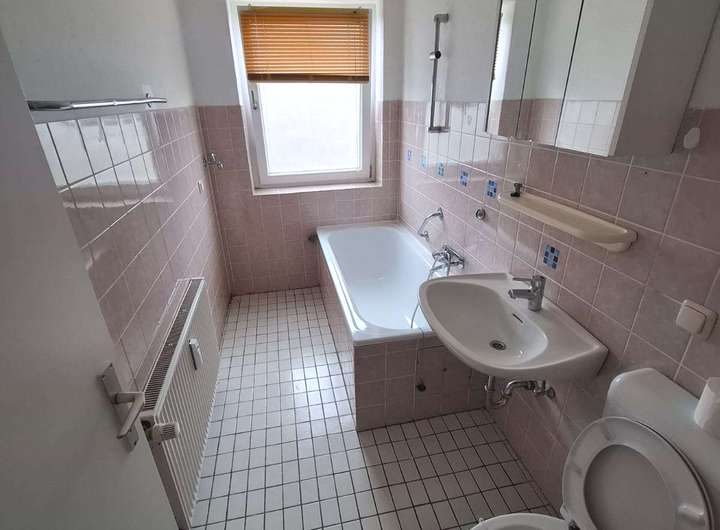 Helle, freundliche 3-Zimmer-Wohnung im Erdgeschoss bestehend aus Wohnzimmer, Schlafzimmer, Kinder-/Arbeitszimmer, Flur, Küche mit Einbauküche inkl. Geschirrspüler und Bad mit Wanne und Fenster. Die Wohnung befindet sich im 1.Obergeschoss und verfügt über einen großen Balkon, begehbar vom Wohn- und Schlafzimmer.