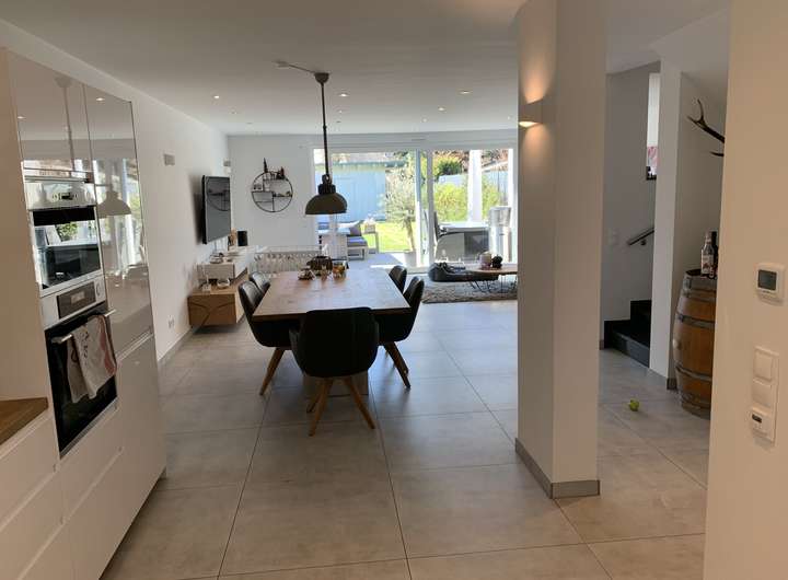 Alle Fenster sind BODENTIEF, auch gibt es eine XXL Schiebetür zum Garten.