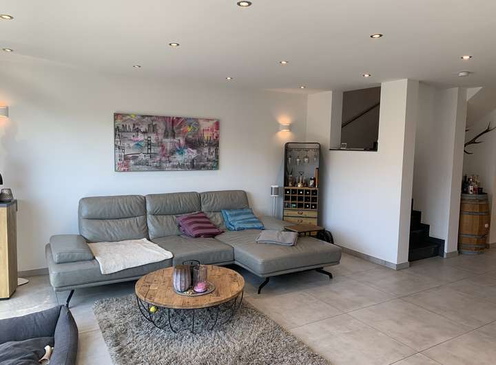Erdgeschoss und Dachgeschoss komplett abgehangene Decke mit LED Warmweiss. Erdgeschoss mit vielen Wandlampen zur indirekten Beleuchtung.