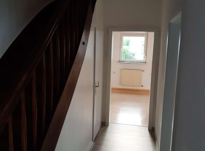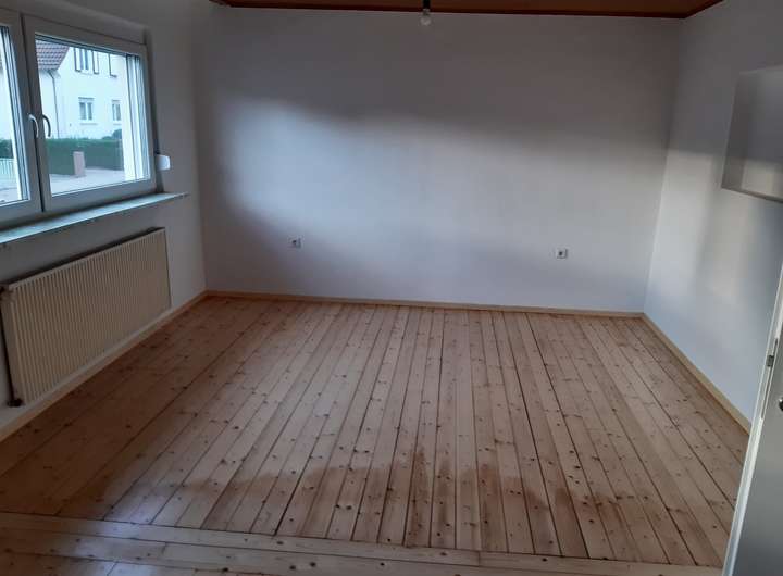 Echtholz-Parkett im komletten Wohnbereich. Laminat in der Küche. Bad gefliest. Neue Zimmertüren im EG. Neue Haustür, ca. 12 qm großer Freisitz/Balkon.