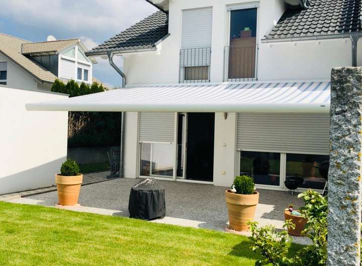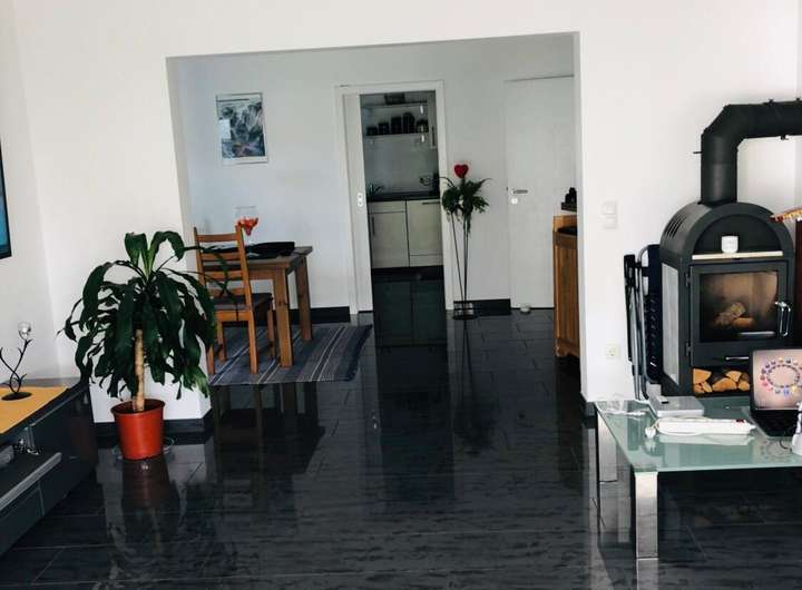 Fußbodenheizung, Kamin, Parkett im Obergeschoss, Terrasse mit großer Markise (6x5 Meter), Warmwasser über Photovoltaikanlagen auf dem Dach, 2 Kellerräume