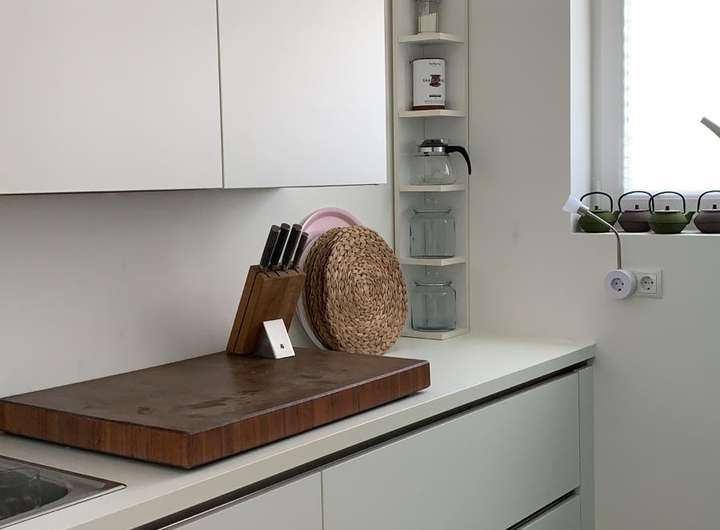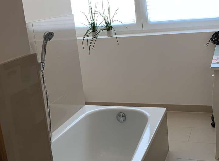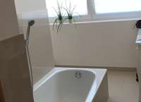 Moderne Einbauküche, Bad mit Badewanne und Dusche, Fußbodenbelag durchgängig helle Fliesen, Fußbodenheizung, alle Räume mit Thermostat, Telefon- und TV-Anschluss.