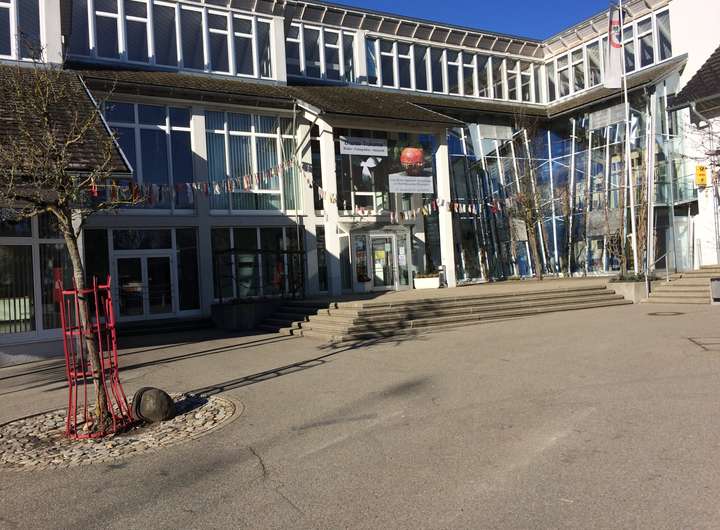 Zentral gelegen: Post, Rathaus, Sparkasse und Busverbindungen nach Schaffhausen und Singen sind in wenigen Minuten erreichbar.