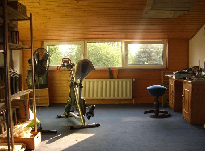 Großes Grundstück, ruhige gepflegte Wohnanlage, RH in Massivbauweise, sehr schönes Atelier, 3 Kellerräume, große Garage, ausreichend Parkplätze, Kabelfernsehen, Iso-Verglasung, Wärmedämmung, Jalousien. Eigene getrennte Heizungs- und Warmwasser Anlage.