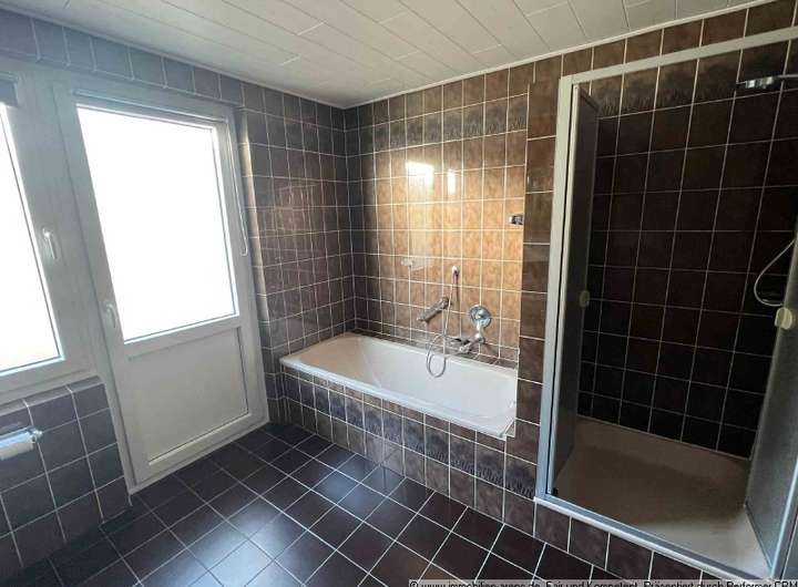 Heizung: Gaszentralsammelheizung. Fussböden: Fliesen im Badezimmer und Gäste-WC, im übrigen PVC-Fussboden. Badezimmer mit Badewanne, Dusche, WC, 2 Waschbecken. Sep. Gäste-WC. Balkon. Kaminofen. Schiebetür vom Wohnzimmer zum Esszimmer. Einbauschränke. Außenrollläden.