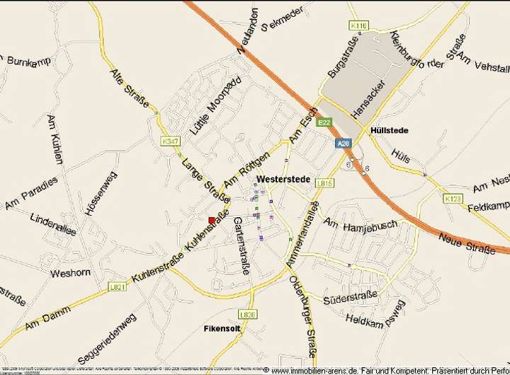 Im Stadtzentrum von Westerstede, Kuhlenstraße. Die Stadt Westerstede, Kreisstadt des Landkreises und Mittelzentrum in der Parklandschaft Ammerland, hat sämtliche Versorgungseinrichtungen für den täglichen Bedarf sowie alle Behörden wie Stadtverwaltung, Kreisverwaltung, Finanzamt, Katasteramt, Amtsgericht etc. Schulen von der Grundschule bis zum Gymnasium. Schwerpunktkrankenhaus "Ammerlandklinik".