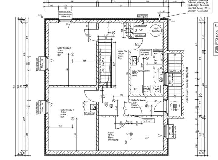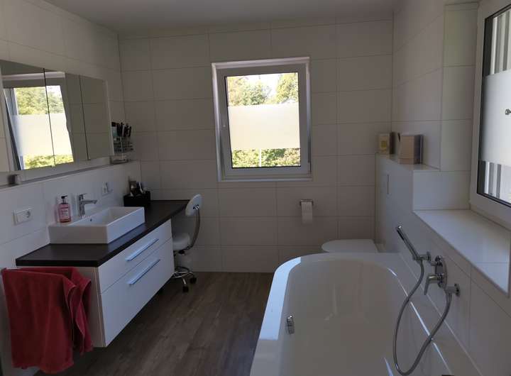 Keller: 2 Hobbyräume mit Wohnraumqualität mit je zwei großen Fenstern und Fußbodenheizung (zu 50% in Wohnfläche einberechnet), 1 Kellerraum mit Werkbank, 1 Hauswirtschaftsraum/Technikraum mit zwei Waschmaschinenanschlüssen, separater Kellereingang über Kelleraußentreppe.