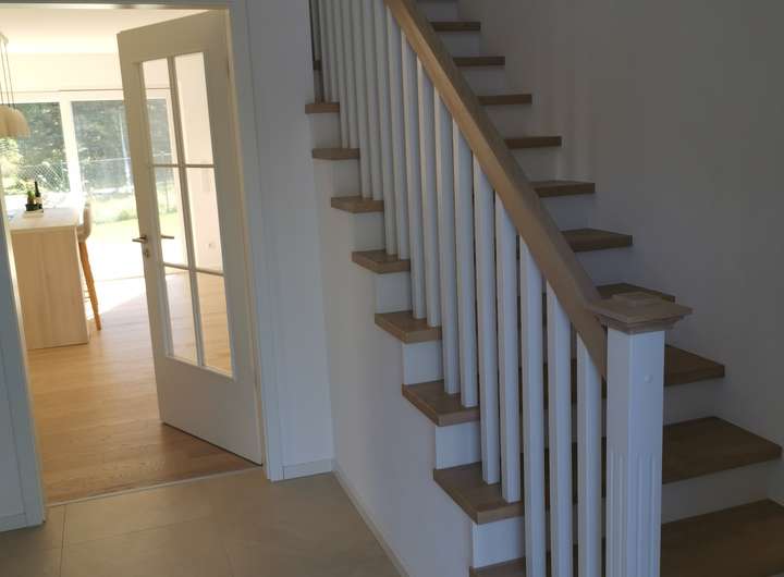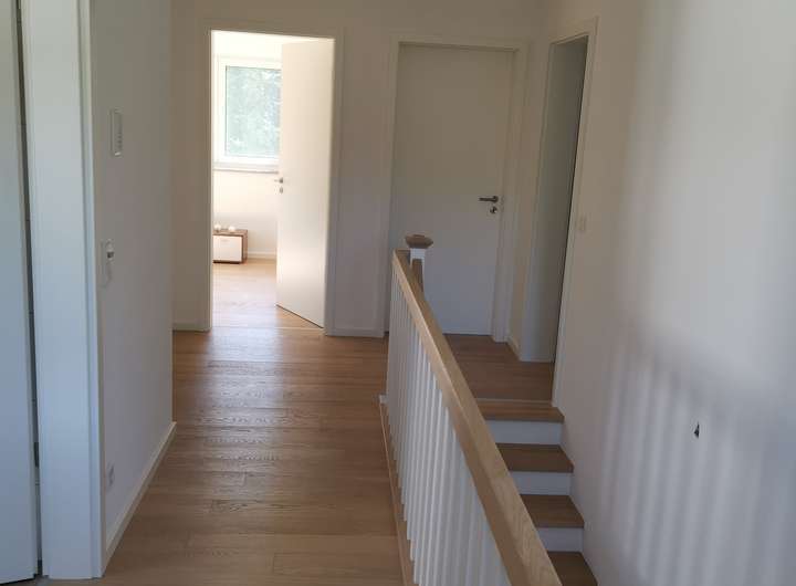 In OG und EG Echt-Holz Eichenparkett und Fliesen, in allen Räumen Fußbodenheizung.