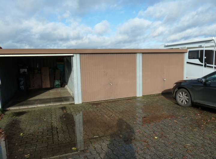 Mitvermietet werden ein kleines Grundstück mit Terrasse, ein Schuppen und eine Garage.