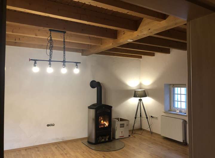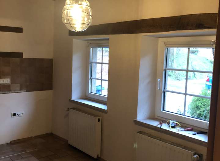 Das gemütliche Häuschen ist vor einigen Jahren bereits modernisierte und hat ein neues Bad mit Dusche und 2 Waschbecken bekommen. Das Erdgeschoss ist gefliest und das DG ist mit Laminat ausgelegt. Isofenster und Ölzentral und ein Kaminofen im Wohnzimmer ist ausreichend für das ganze Haus. Die Küche ist gros für ein Esstisch und eine neue Einbauküche wird noch geliefert und eingebaut.