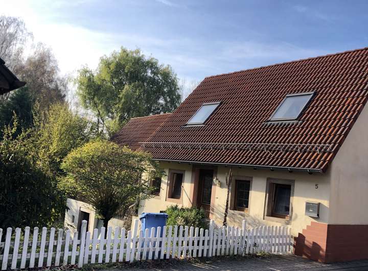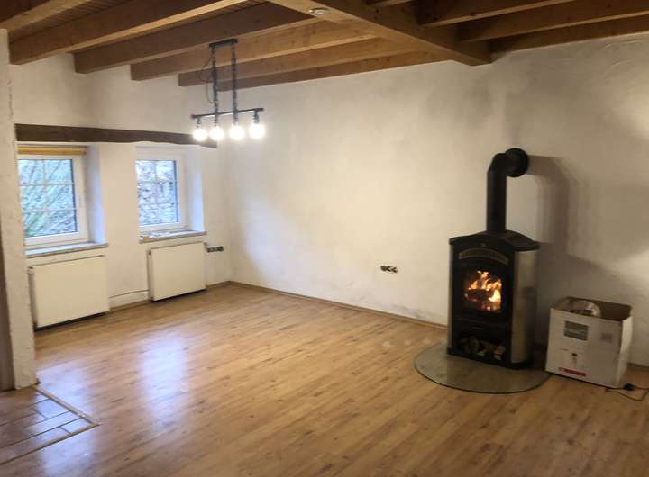 Häuschen zum verlieben mit Garten, kleine Werkstatt und Platz für Mensch und Tier. Im Erdgeschoss großes Wohnzimmer mit Kaminofen und Wohnküche mit neuer Einbauküche. Duschbad und 2 Schlafräume im DG.