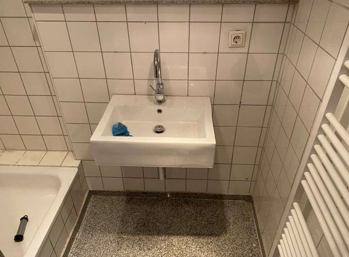 - Großzügiges Vollbad mit Badewanne, Dusche und Waschbecken