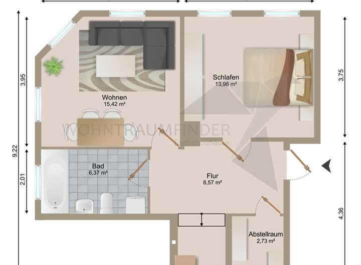 Alle Angaben wurden nach bestem Wissen gemacht. Irrtümer und Zwischenvermietung vorbehalten. Dieses Exposé ist eine Vorinformation, als Rechtsgrundlage gilt allein der abgeschlossene Mietvertrag. Dem Verbraucher steht bei außerhalb von Geschäftsräumen geschlossenen Verträgen und bei Fernabsatzverträgen ein Widerrufsrecht gemäß § 355 BGB zu. Bitte beachten Sie unsere Widerrufsbelehrung. Diese finden Sie unter www.wohntraumfinder.com.