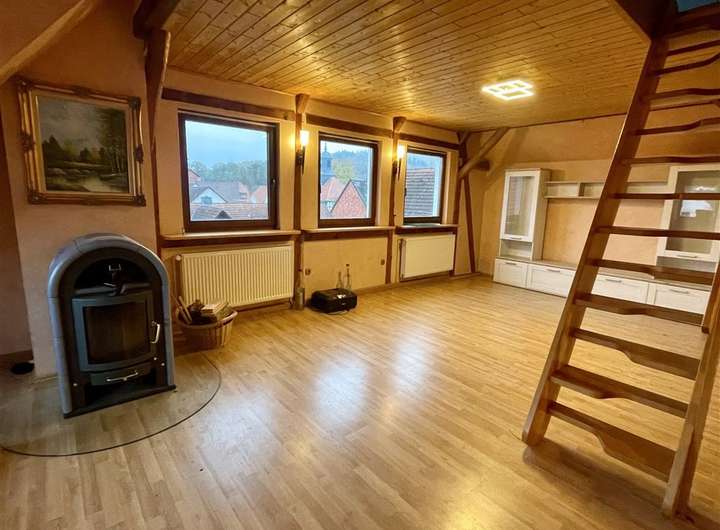 Das Zweifamilienhaus mit angrenzender Scheune und Werkstatt wurde ca. im Jahr 1935 massiv erbaut. In den Jahren 1998 - 2008 wurde das Objekt nach und nach umfangreich renoviert und umgebaut, sodass 4 Wohnetagen entstanden. Das Erdgeschoss und das 1. Obergeschoss bestehen aus 3 Zimmern, einer Küche mit Essbereich, zwei Badezimmern. Neben der Scheune erreichen Sie im 1. Obergeschoss einen großen Raum mit ca. 42 m² Fläche und einer Deckenhöhe von ca. 3,5 m inkl. Gäste WC. Die Nutzung für diese Räumlichkeit lässt viel Platz für Ideen. Die Fläche dieses Raumes ist in der Angabe der Wohnfläche nicht enthalten.