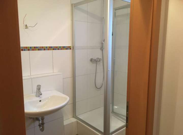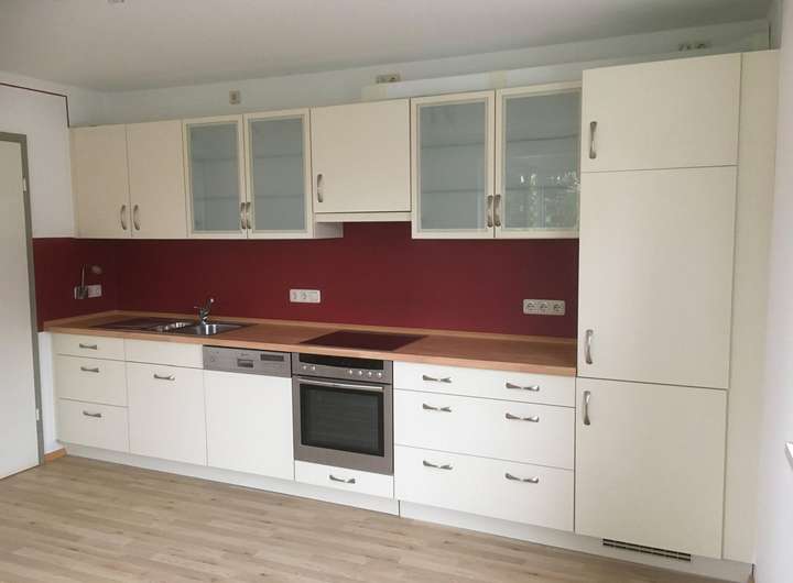Zur Wohnung gehört auch ein kleiner Balkon. Ihnen stehen außerdem eine Einbauküche sowie eine Garage zur Verfügung.