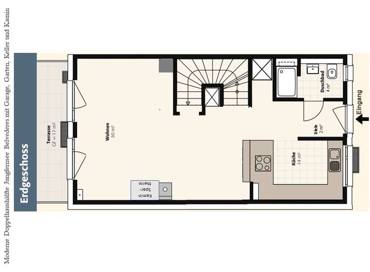 Die im Jahr 2019 errichtete Doppelhaushälfte mit einer Wohnfläche von ca. 145qm befindet sich auf einem Grundstück mit ca. 297qm. Der Garten hat eine Fläche von ca. 100qm.