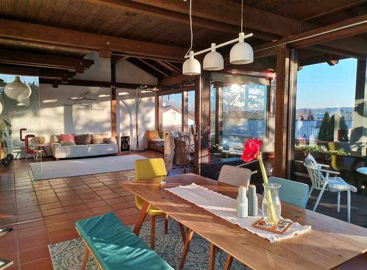 Bei dem herrlich gelegenen Einfamilienhaus mit interessanter Architektur handelt es sich um ein attraktives Haus, das sich durch eine gehobene Innenausstattung auszeichnet. Das Haus (einseitig am Nachbarn angebaut) bietet neben vier einladenden Zimmern und einer hellen und geräumigen Galerie sowie zwei Badezimmern und einem separaten Gäste-WC genügend Platz für die ganze Familie. Im Wohnzimmer und Esszimmer können gemeinsame und gemütliche Stunden verbracht werden. Bei gutem Wetter stehen die Terrasse, der geräumige und überdachte Balkon und der pflegeleichte Garten mit Gartenhaus zur Verfügung, um ausgiebig Sonne zu tanken. Stauraum für Küchenutensilien bietet die bereits vorhandene Einbauküche. Auch in dem Keller finden Sie einen weiteren Aufbewahrungsort. Eine Doppelgarage mit elektrischem Torantrieb am Haus rundet das Bild ab. Der monatliche Mietpreis liegt bei 2.100 Euro.