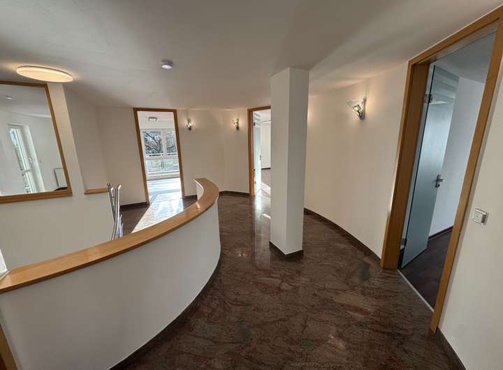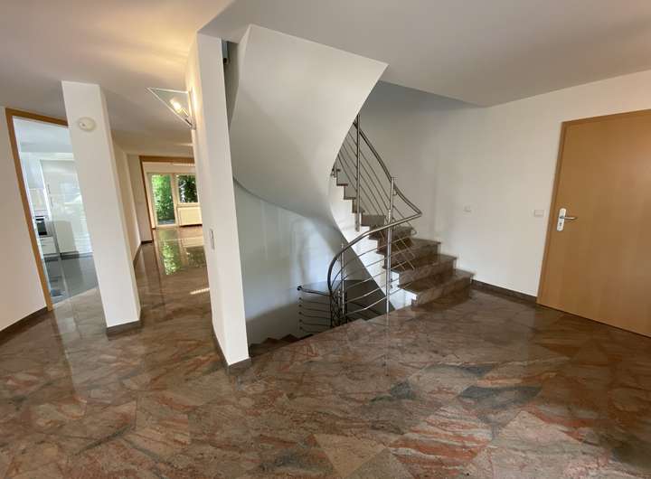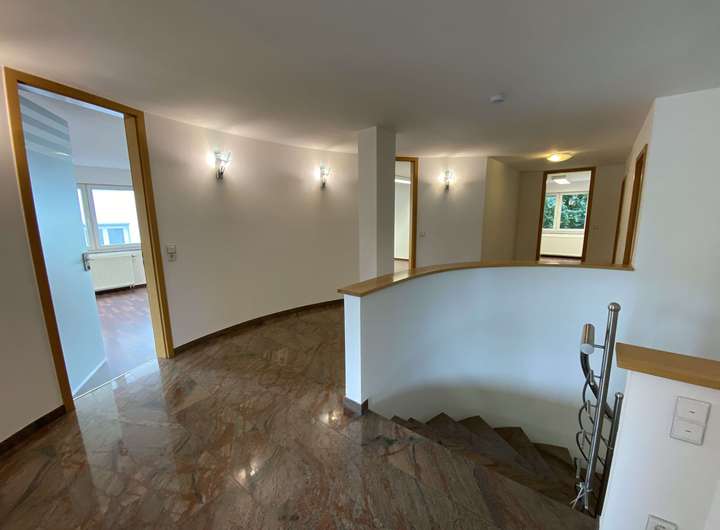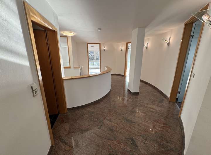 Riesige Maisonette-Wohnung! Diese neu renovierte Maisonette-Wohnung stellt mit ihrer gehobenen Ausstattung und ihren über 260 qm Wohnfläche und auf zwei Etagen sicherlich eine imposante Ausnahme dar. Breite Flure mit Granit-Fußböden, sowie eine großzügige Wendeltreppe in das erste Obergeschoss vermitteln ein weites Raumgefühl.
