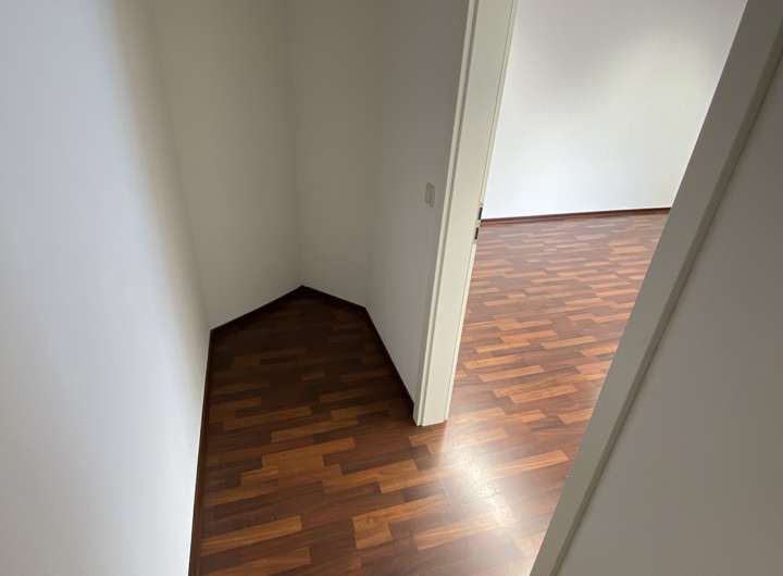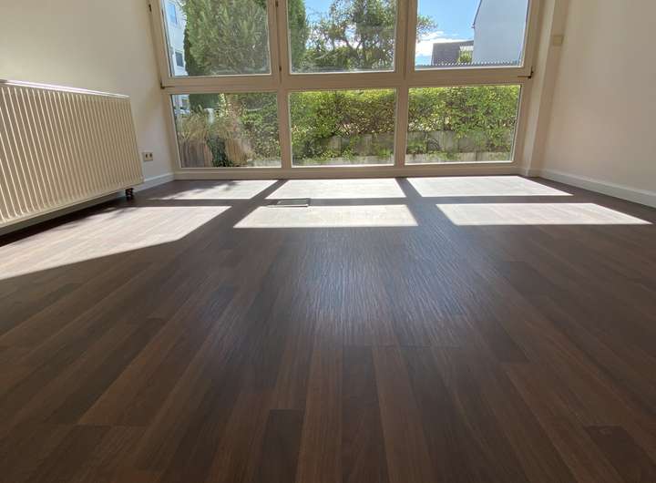 * Granit und dunkler Laminat-Fußboden