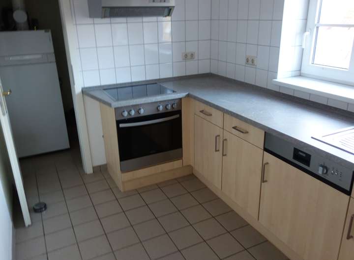 Das frisch renovierte Badezimmer ist hochwertig gefliest und mit einer Dusche, einem Bidet sowie einem Fenster für natürliches Licht ausgestattet. Die moderne Einbauküche verfügt über einen Geschirrspüler und bietet optimale Bedingungen für entspanntes Kochen im Alltag.