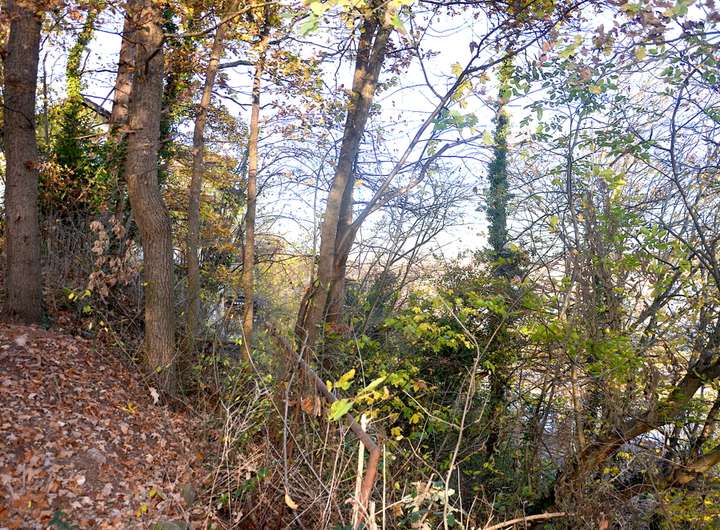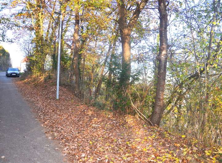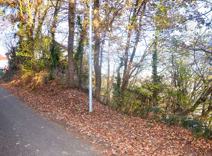 Dieses große Hanggrundstück befindet sich an einer kleinen Durchfahrtsstraße in Birkenfeld bei Pforzheim.