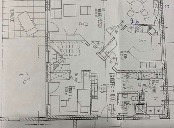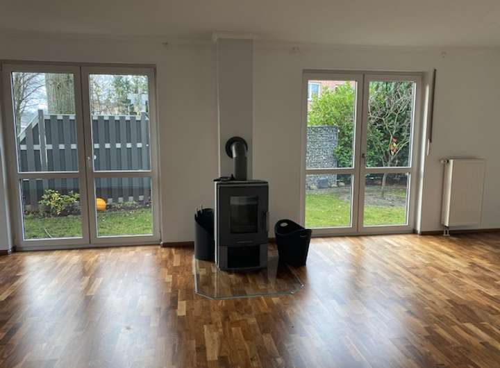 Freuen Sie sich auf ein großzügiges und modern geschnittenes Einfamilienhaus in zentraler Lage. Kita, Grundschule und Lebensmittelgeschäft sowie Sportstätten sind fußläufig erreichbar. Das Haus verfügt über eine voll eingerichtete Einbauküche mit neuwertigen E-Geräten und Esstresen. Im Wohnzimmer befindet sich ein Kaminofen und drei bodentiefe Fenster zum Garten. Zudem gibt es im Erdgeschoß ein Arbeitszimmer sowie einen Hauswirtschaftsraum und das Gäste-WC mit Dusche.