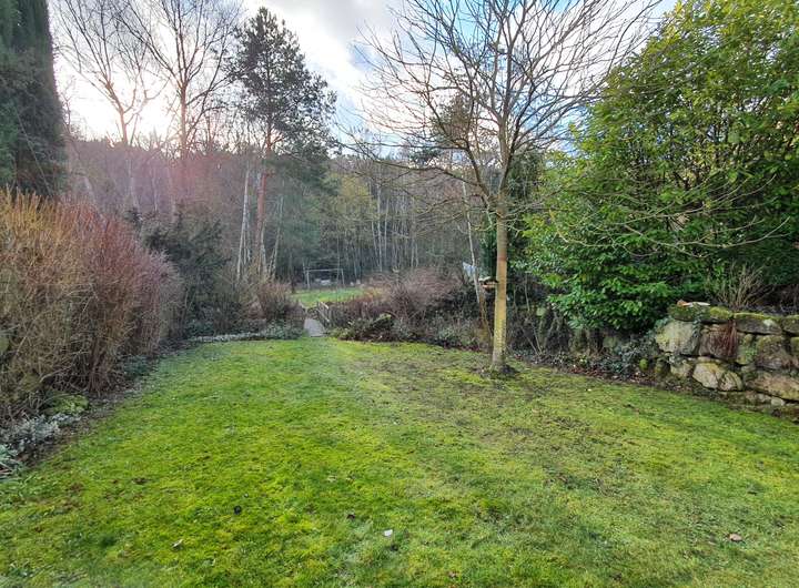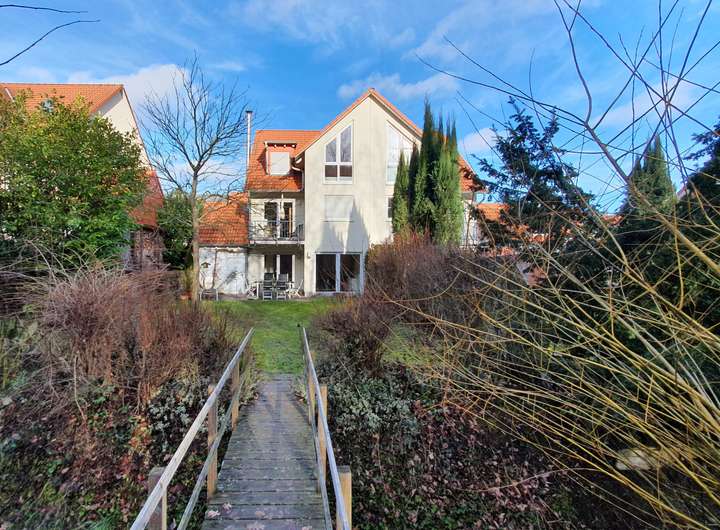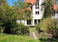 - Großes Gartengrundstück (1060 m2) durch Holzbrücke über den "Seebach" verbunden