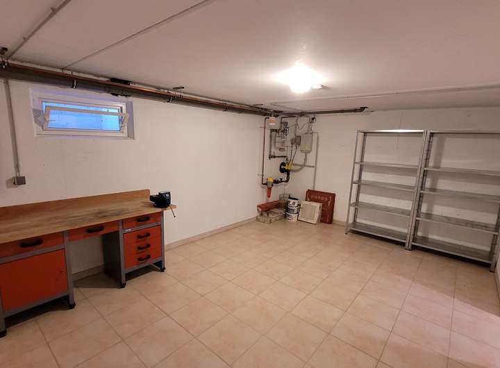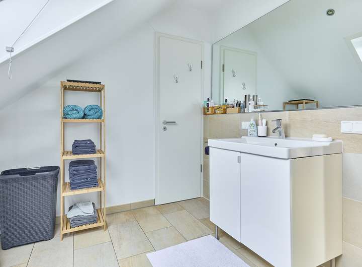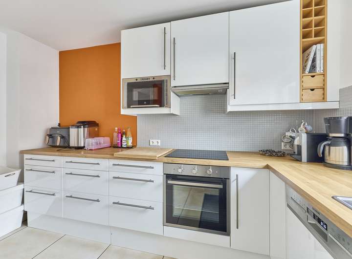 - Einbauküche (Induktionskochfeld, Abzugshaube mit Abluft, Ofen, Kühl-/Gefrierkombination, Spülmaschine, Mikrowelle)