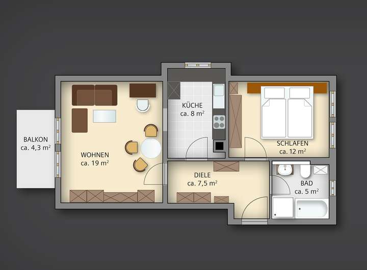 Wohnfläche ca. 52 m², Bj. 1998, Hochparterre, mit sonnigen Balkon, modern komplett möbliert, voll ausgestattete Küche, Kellerraum, abschließbarer Fahrradstellplatz für 2 Fahrräder, 2 Kfz-Stellplätze direkt vorm Haus (im Mietpreis enthalten), Internet über Telekom verfügbar, Nichtraucherwohnung, Hausmeisterservice (Hauspflege, Winterdienst, Gartenpflege) in den Nebenkosten anteilig enthalten.