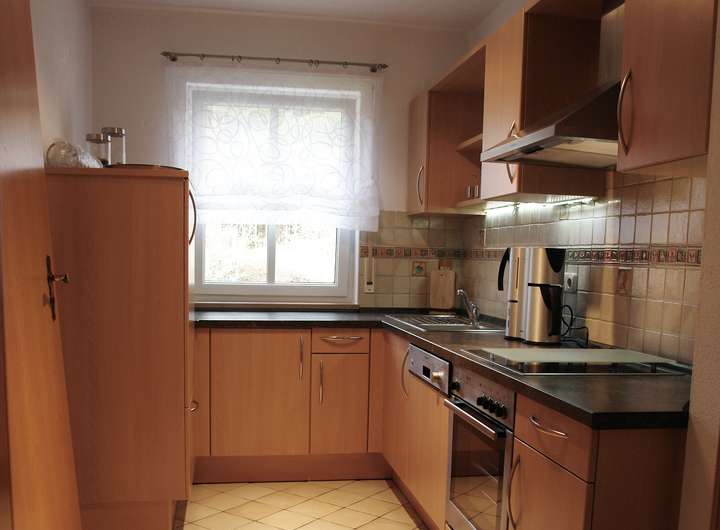 Die Küche ist komplett ausgestattet mit Utensilien des täglichen Bedarfs wie Geschirr, Kühlschrank, Herd, Mikrowelle, Kaffeemaschine uvm.