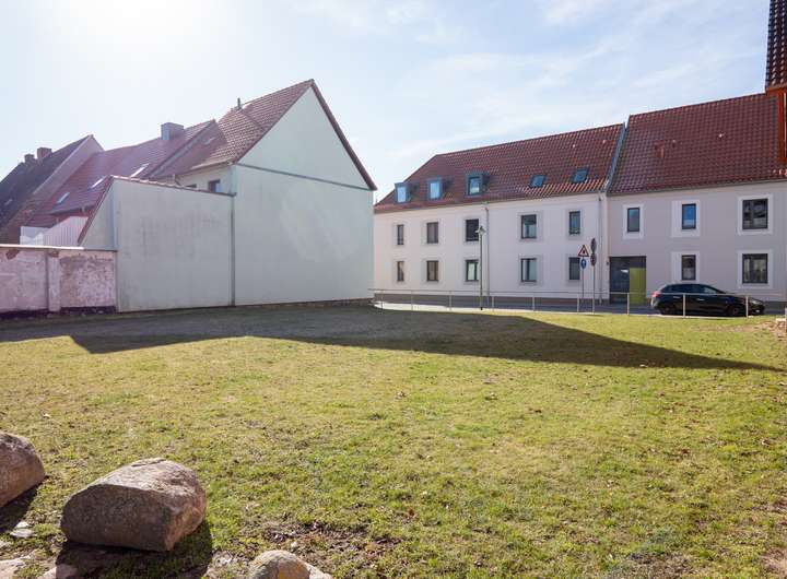 Das Grundstück befindet sich in unmittelbarer Nähe am Demminer Tor sowie dem Stadtgraben. Es eignet sich idealerweise für die Erbauung eines Einfamilienhauses. Gegenüber dem eigentlichen Wohnbaugrundstücks befinden sich zwei weitere kleinere Grundstücke, die für die Errichtung von Stellplätzen, Carports oder Garagen vorgesehen sind. Zwischen den beiden Flächen entsteht ein Weg mit Brücke über den Stadtgraben.