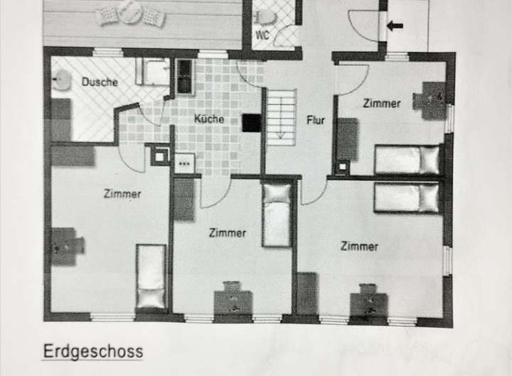 Die Wohnfläche von knapp 160 m² erstreckt sich auf 2 Etagen und ist ideal als WG- , für Studenten- , Pendler oder als Arbeiterwohnheim für Firmen gut geeignet.
