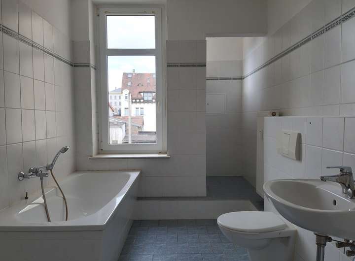 Kleine Single-Wohnung mit großer Küche sowie einem Tageslichtbad.