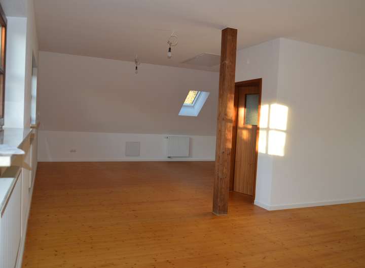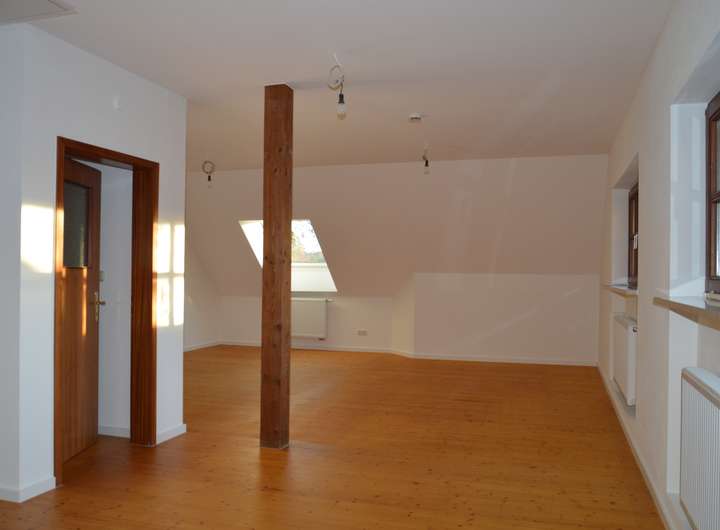 Das Dachgeschoss mit rd. 44 m² Wohnfläche bietet ein sehr großes, helles Studio mit Fichtenboden.