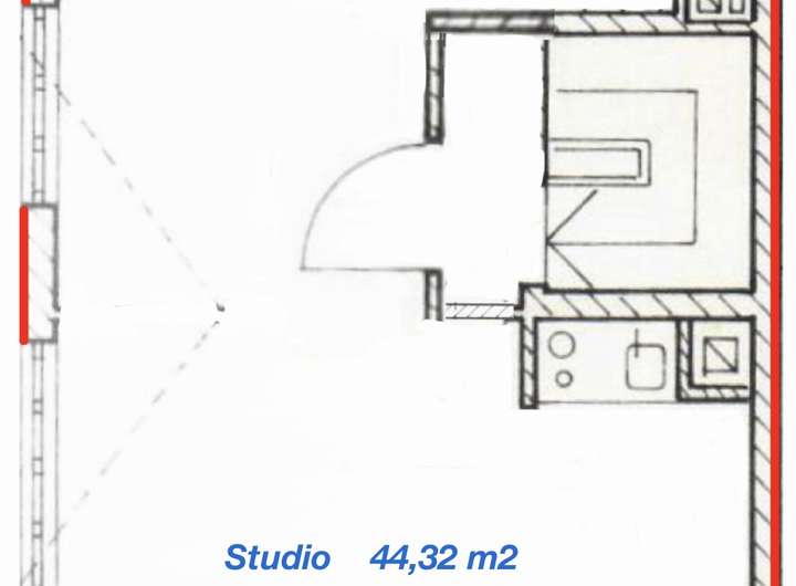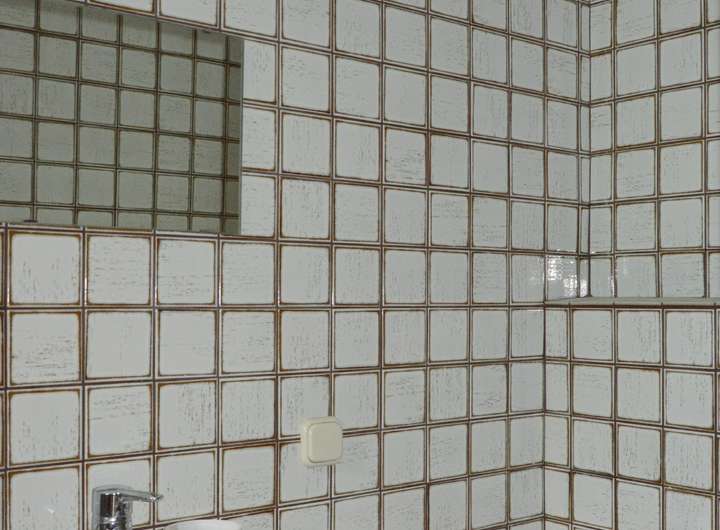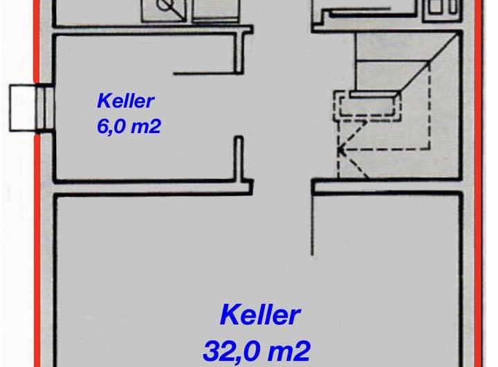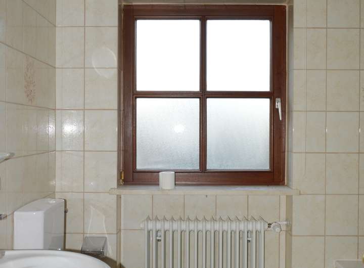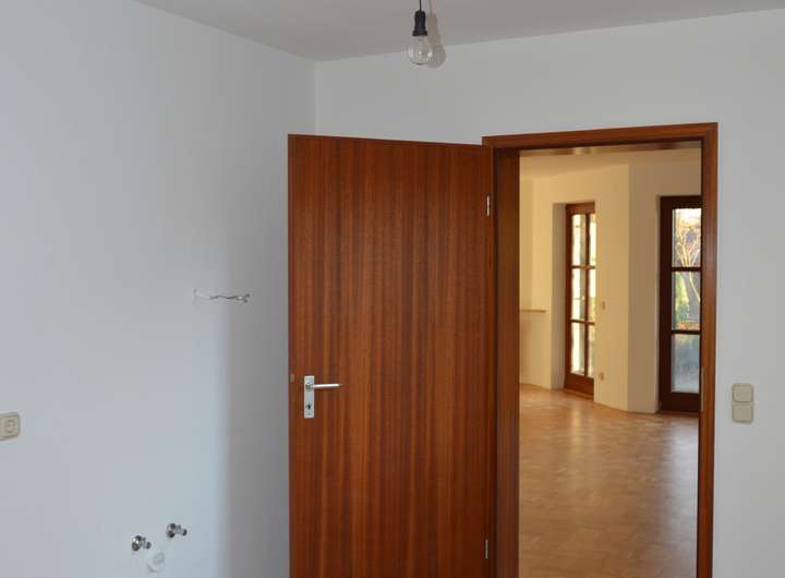 In der Wohnküche ist der Küchenbereich und der Essplatz über eine halbhohe Mauer gegliedert. Kücheneinbauten sind nicht vorhanden.