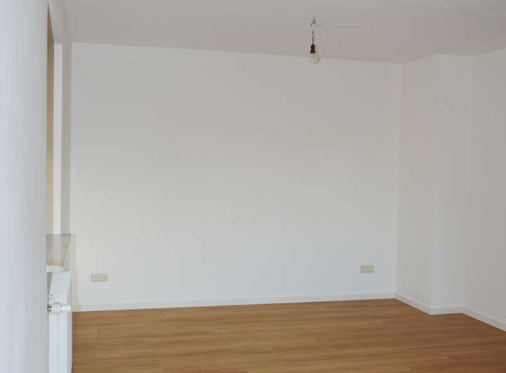 Im Wohnzimmer liegt Parkettboden (Eiche).