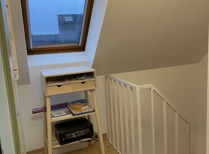 1,5m² Flur als Büroplatz einrichtbar, Schrägfenster zum Öffnen.