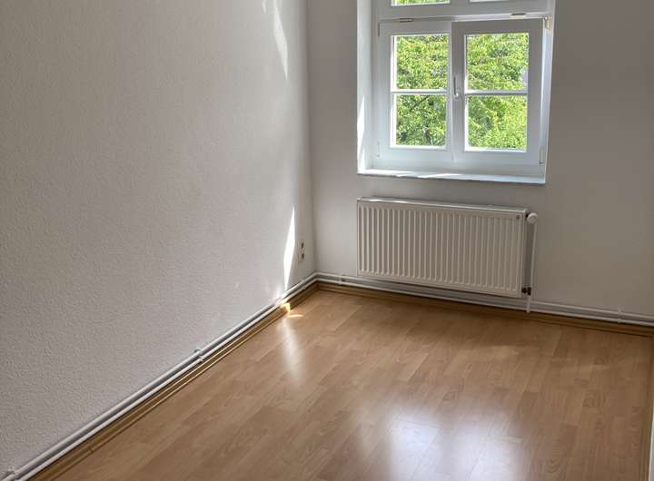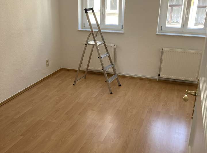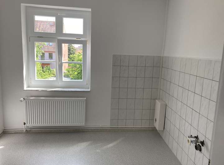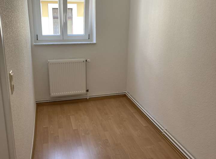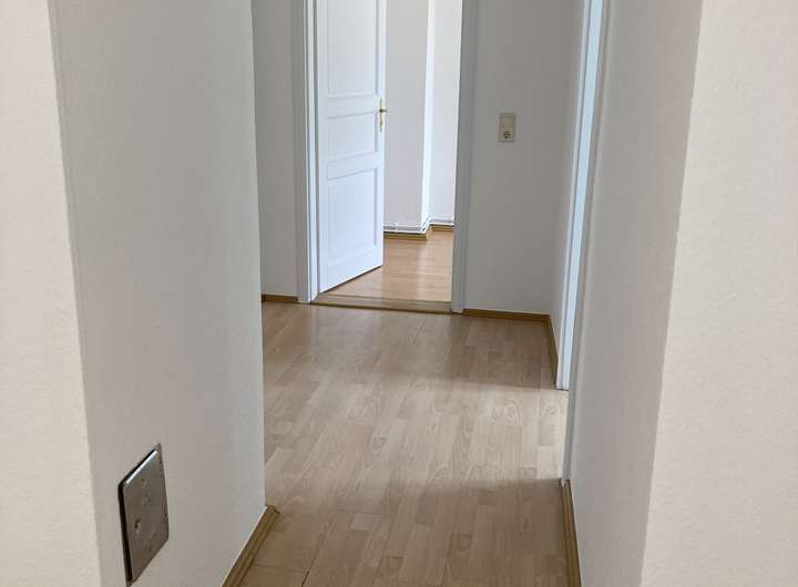 Die Wohnung ist frisch renoviert (Raufaser-Tapete, weiß).