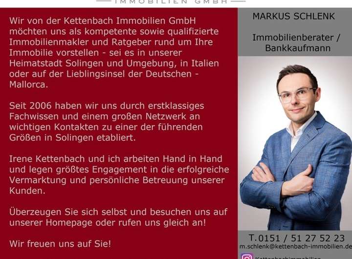 Diese schöne 3 Zimmerwohnung befindet sich in ruhiger Lage in Wuppertal-Cronenberg. Die Grundschule und eine Bushaltestelle sind nur wenige Gehminuten entfernt. Ärzte, Apotheken, Geschäfte, Restaurants, ein Fitnessstudio und das Theater befinden sich in unmittelbarer Nähe und sind in ca. 10 Minuten bequem zu Fuß erreichbar.