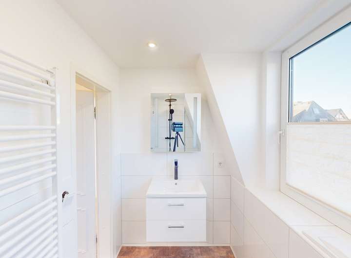Die neu eingebaute Küche wurde mit Liebe zum Detail gestaltet und überzeugt durch ihre Großzügigkeit. Hier finden Kochliebhaber alles, was das Herz begehrt. Die Badezimmer auf allen Etagen sind praktikabel gestaltet und bieten einen guten Komfort. Auch Sie wurden im Rahmen der Teilsanierung erneuert.