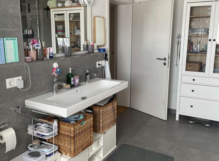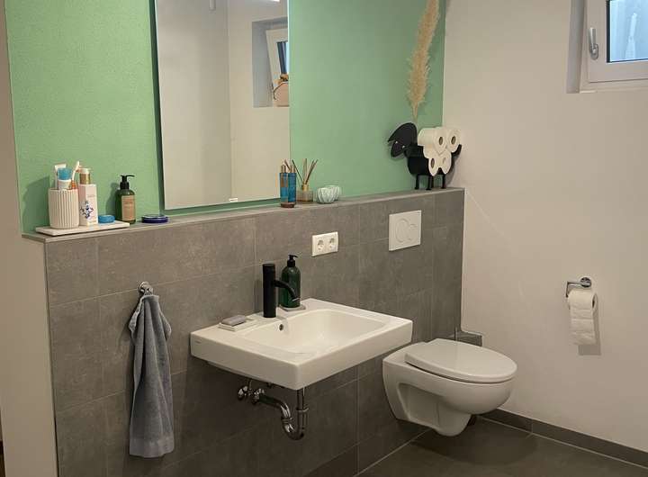 Die Wohnung umfasst 2 Etagen (EG und Souterrain) eines Zweifamilienhauses und besticht durch eine gehobene Innenausstattung. Wie für modern ausgestattete Wohnungen üblich, gehören zu den fünf schönen Zimmern auch ein Badezimmer sowie ein separates Gäste-WC.
