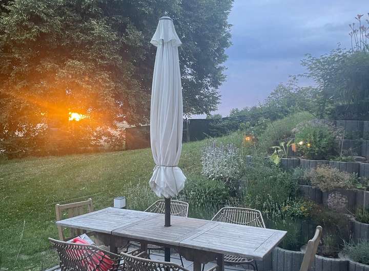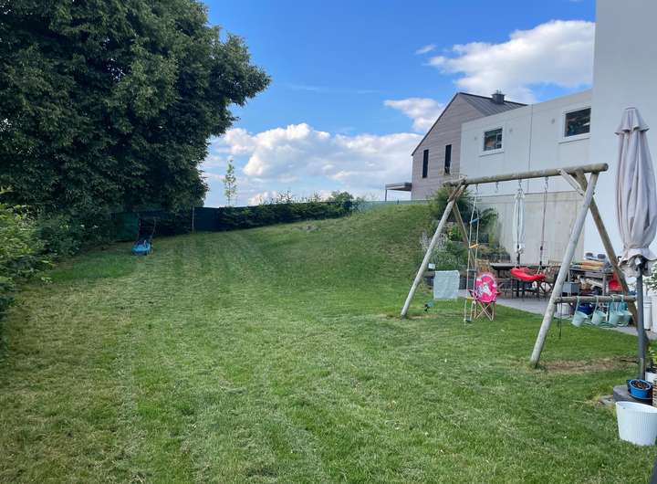 Der Zugang zum Garten kann auch direkt neben dem Hauseingang oder durch eine seitliches Gartentor erfolgen. Der gesamt Garten in eingezäunt und mit einer Hecke bepflanzt.