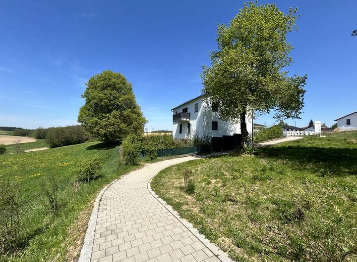 Das Objekt liegt am äußeren Ortsrand von Steinkirchen, Süd- und Westseite ohne weitere Bebauung und mit Blick ins Grüne.