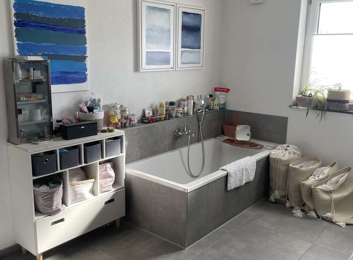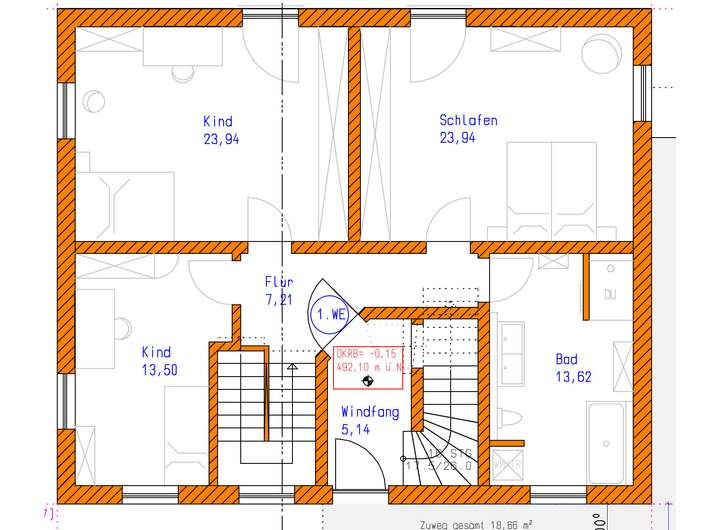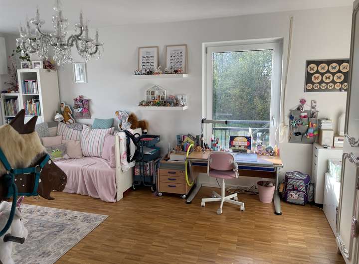 Der Eingang in die Wohnung erfolgt im EG in den Eingangsbereich der Wohnung. Vom Flur aus hat man aus Zugang in die 3 Schlaf- bzw. Kinderzimmer und das großzügige Bad.