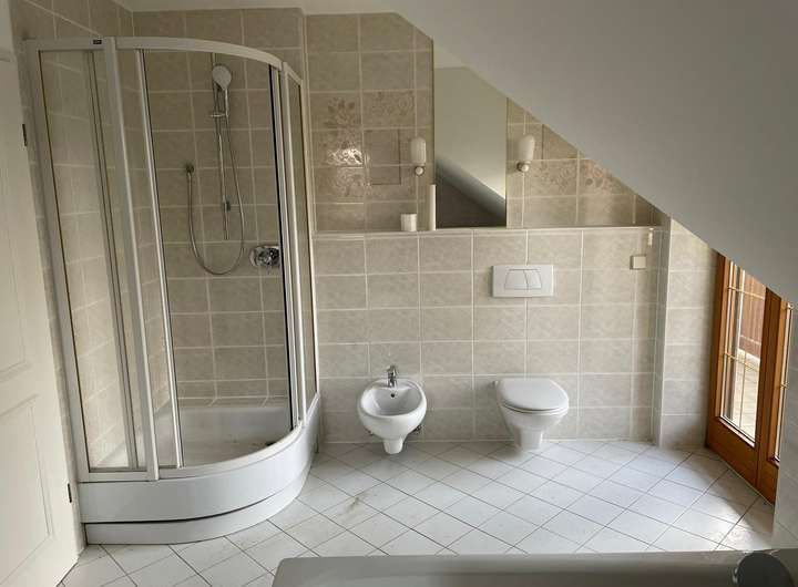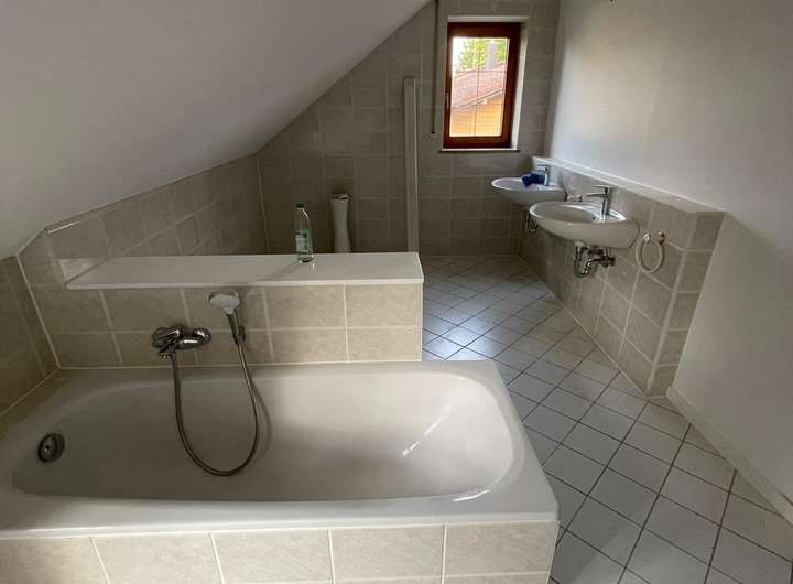 - Das große Bad verfügt über 2 Waschtische, Badewanne, Dusche, WC und Bidet.