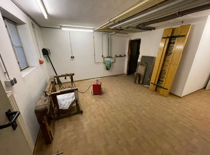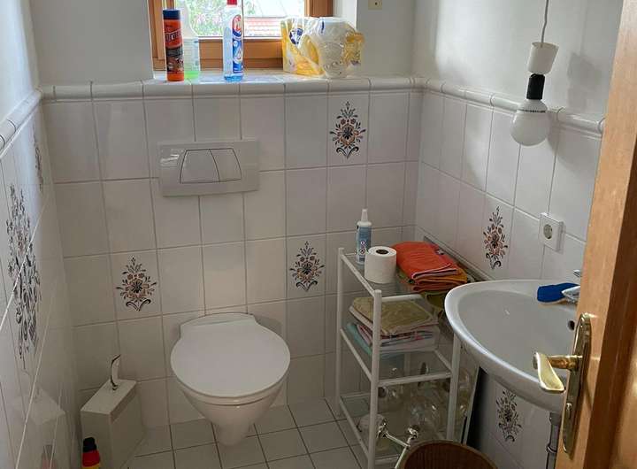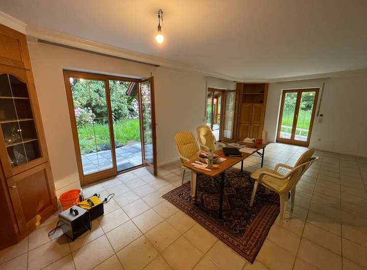 - Fliesenboden im EG, im Studio und im Wasch-/Bügelraum, ansonsten in den Zimmern im DG neuer Vinylboden in Holzoptik