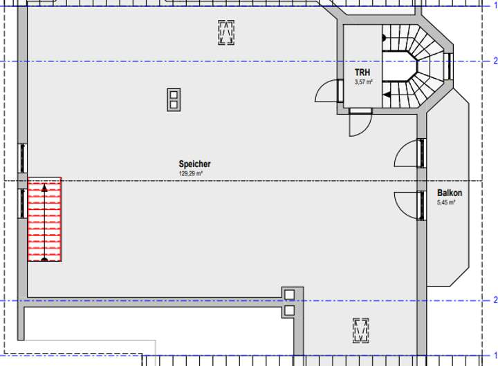 Über die Treppe im Wohnbereich gelangt man in das Speichergeschoß; diese wird Wohnung neu zugeschlagen und ist individuell ausbaubar. Das Speichergeschoss hat ebenfalls noch einen weiteren Balkon und einen direkten Zugang ins Treppenhaus.