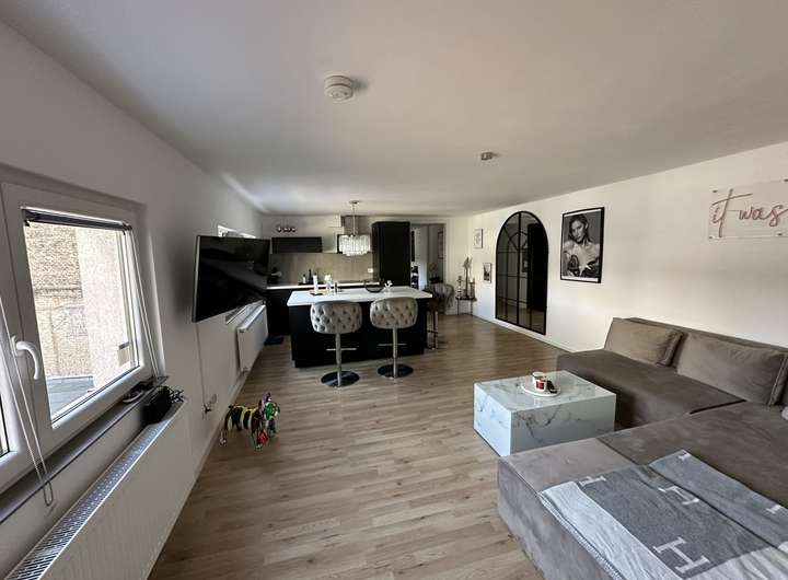 Ein separates Treppenhaus führt Sie in die 2. Etage dieses gepflegten Hinterhauses, von wo aus Sie in den großzügigen und lichtdurchfluteten Wohn-/Küchenbereich gelangen. Der offene, einladende Raum sorgt für eine angenehme Wohnatmosphäre. Vom Wohnzimmer aus erreichen Sie das moderne Tageslichtbad, das mit großformatigen Feinsteinfliesen ausgestattet ist und über eine Badewanne sowie einen Waschmaschinenanschluss verfügt. Alle weiteren Räume sind mit hochwertigem, hellen Eiche-Laminatboden versehen.