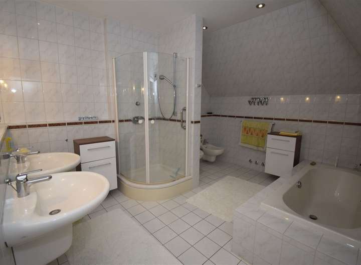 2 Schlafzimmer, Duschbad, Wannenbad und Abstellraum im Obergeschoss.