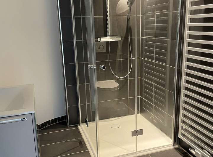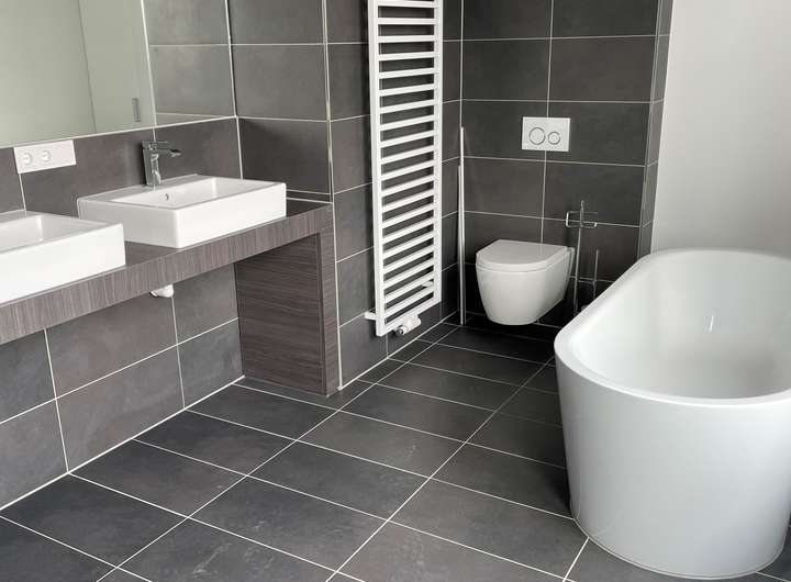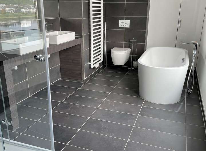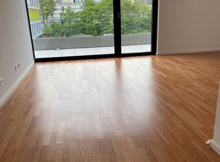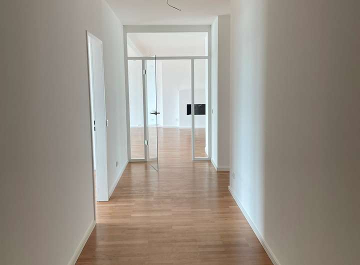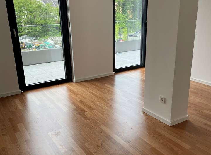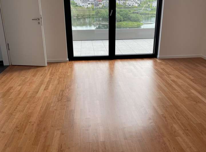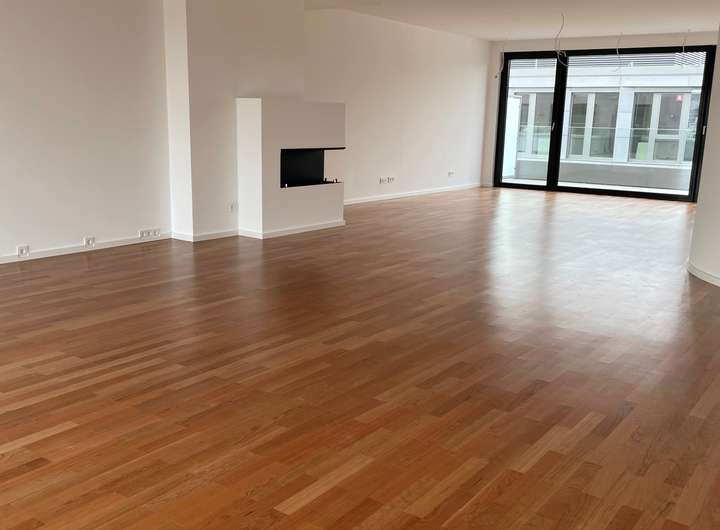Die Wohnung besteht aus einem großzügigen Wohnzimmer mit offener Küche, drei Schlafzimmern, einem Hauptbad mit zwei Waschbecken, Badewanne sowie barrierefreier Dusche, einem zweiten Dusch-Bad, einem Gäste-WC, einem Hauswirtschaftsraum, drei Terrassen und einem Kellerraum. Die Wohnung ist mit hochwertigem Parkett ausgestattet und verfügt über eine Warmwasser-Fußbodenheizung mit Thermostatregelung je Raum. Die Bäder und das Gäste-WC sind mit hochwertigen Sanitärobjekten ausgestattet. Die Duschabtrennungen sind aus Ganzglas. Alle Fenster sind mit elektrischen Außenraffstores versehen. In zwei Schlafzimmern befinden sich Wandkühlgeräte. Die Wohnung ist mit Fernseh- und Internetanschlüssen in allen Wohnräumen sowie einer Videoklingelanlage ausgestattet. Im Wohnzimmer befindet sich ein Ethanol-Kamin, der für eine behagliche Atmosphäre sorgt und zum Entspannen und Verweilen einlädt, Perfekt für gemütliche Abende zu Hause.